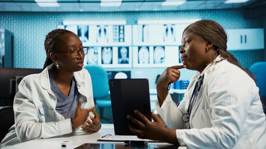 Therapeutinnen nutzen App-Daten, um Sitzungen zu fokussieren, Fortschritte zu messen und Übungen passgenau zu empfehlen. Die Kombination bringt Tiefe und Kontinuität. Fragen Sie aktiv nach, wie Sie Ihre digitale Routine sinnvoll mit der Behandlung verzahnen können, ohne Druck zu erzeugen.